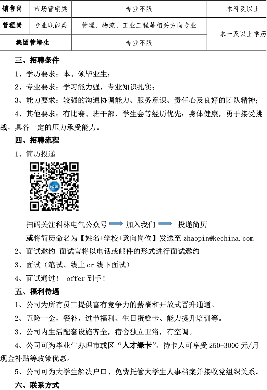 石家庄科林电气股份有限公司2022届招聘简章